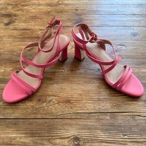 Step out in style with these elegant pink strappy sandals. Perfect for any occasion, these shoes offer both comfort and fashion.