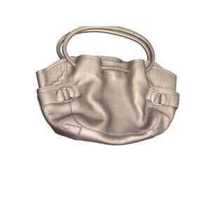 Cole Haan Leather Denney Shoulder Slouchy Hobo Bag Metallic Silver