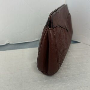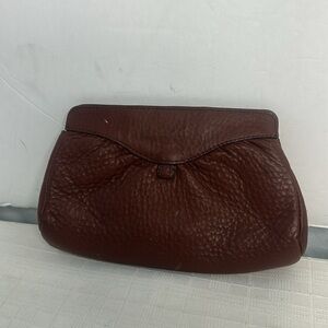 THIS IS A VINTAGE SMALL COLE HAAN EVENING CLUTCH. IT IS IN VERY GOOD CONDITION WITH NO LOOSE SEAMS, STAINS OR SCRATCHES. IT IS A COGNAC BROWN PEBBLE LEATHER.