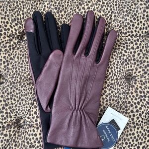 Cole Haan Leather Points Stretch Gloves in Pinot