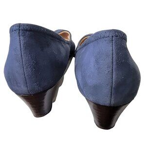 Cole Haan Leather Wedge Shoes Women 8.5 Blue Suede Loafer Slip On Cushioned 39