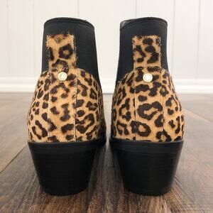 Cole Haan Leopard Print Ankle Boot Bold Neutral Dyed Calf Hair Size 5.5 Brown