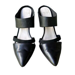 Elevate your style with these stunning Cole Haan Lexington Pump Heels women's size 7B. Slip into these pointed toe mules for a chic and effortless look that is perfect for any occasion. With a sleek black leather upper and a high stiletto heel, these shoes are sure to make a statement. These Cole Haan Lexington shoes are designed with comfort and style in mind, featuring a leather lining, insole and outsole. Perfect for office, weddings, parties, formal events or a casual day out, these shoes are a must-have for any fashion-forward woman. This pair of Cole Haan pumps with stiletto heels in black leather women's size 7B are in good pre owned clean condition with some minor use wear, no stains, holes, peeling, or odor issues. Please review the pictures for more details and information, thank you.