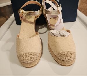 Cole Haan Linen Gold Espadrille Wedges Size 10 NIB