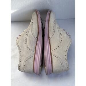 Cole Haan Lunar Grand Gray Suede Lavender Sole Wingtip Oxford Shoe Women SZ 7.5