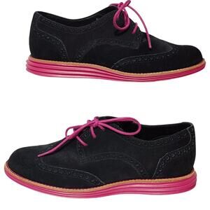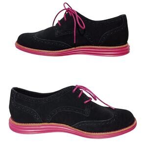 Cole Haan Lunargrand Wingtip Casual Oxford Shoes Pink Suede Leather Womens 6.5B