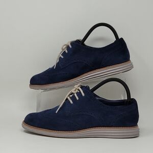 Cole Haan Lunargrand Wingtip Oxford Women's Size 8.5B Blue Suede Leather Shoe Pre-owned condition zoom in all pictures for details