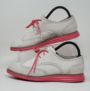 Cole Haan Lunargrand Women’s 8.5 Light Gray Suede & Pink Wingtip Oxford Shoes