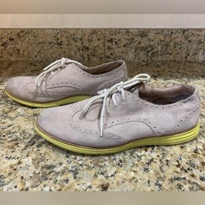 Cole Haan Lunargrand Womens 8.5B Sneakers Beige Suede Leather Green Oxfords