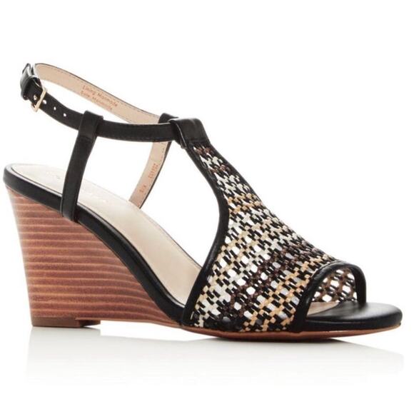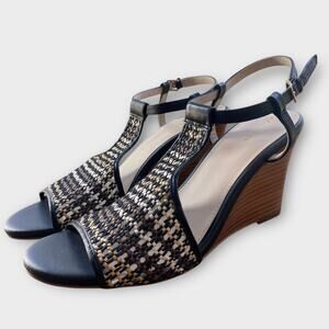 Cole Haan Maddie Open Toe Wedge Sandal US 9 Black Brown Woven Boho Chic Neutral