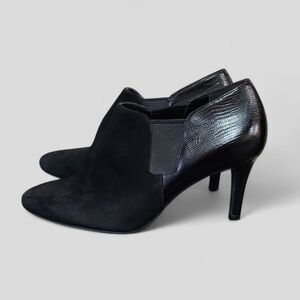 Cole Haan Maxfield Shootie ll Booties Womens Size 8B Black Suede/Reptile Leather
