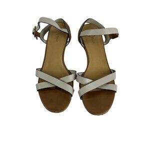 Cole Haan Melrose Off White Beige Gold Trim Wedge Heel Sandals Ankle Closure 8B