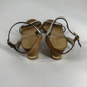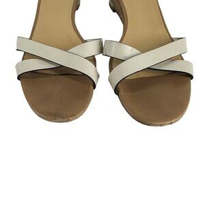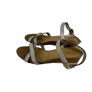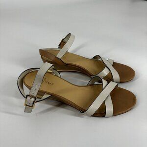 Cole Haan Melrose Off White Beige Gold Trim Wedge Heel Sandals Ankle Closure Size 8B
