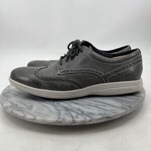 Cole Haan Mens 10 Shoes Grey Grand OS Leather Lace Up Wingtip Dress C24895