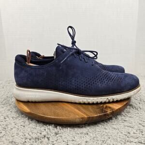Cole Haan 2.ZeroGrand Blue Leather Laser Wingtip Business Casual Oxford