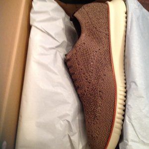 Up for sale is a brand new in the box pair of men's Cole Haan 2.Zerogrand brown stitchlite(knit) wingtip oxford shoes(C35634) with suede details, USA size 11.5 medium. Stitchlite is a flexible and breathable material made of wool, nylon and polyester. I only ship to USA.