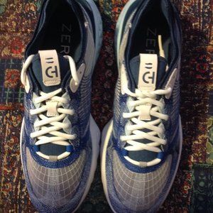 Up for sale is a brand new in the box pair of men's Cole Haan 5.0 ZeroGrand multicolor(blue & white) Embrostitch running sneakers(C37354), USA size 11.5 medium. I only ship to USA.
