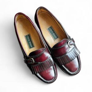 Cole Haan; men’s loafers; slip-on dress shoes; size 8.5 D; burgundy shoes; cordovan leather; classic men’s shoes; business casual; formal footwear; luxury loafers; men’s slip-ons; Cole Haan cordovan; vintage Cole Haan; men’s burgundy dress shoes; leather loafers