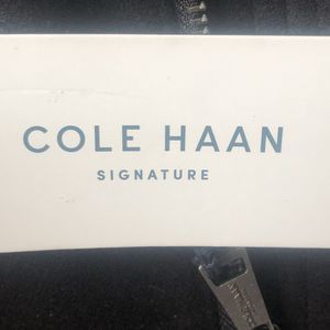 Elevate your style with this classic Cole Haan Men's Black Melton Wool Trucker Jacket. Crafted with a blend of wool, polyester, and other fibers, this jacket is designed to keep you warm and stylish. The full zip closure and button accents add a touch of sophistication, while the black color and zipper accents give it a modern edge. Dry clean only for long-lasting wear. Perfect for any occasion, this jacket is a must-have for any fashion-forward man's wardrobe.