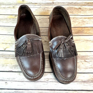Cole Haan Mens Brown Leather Slip On Fringed Tassled Preppy Loafer Shoes 10.5D