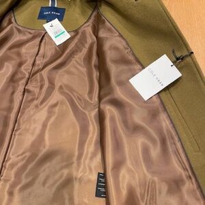Men's 70% wool, 10% cashmere, and 20% Nylon car coat. Size: Large. Color: Camel. New With Tags. Excellent condition, never worn. Vent in back. Two front pockets and one inside left chest pocket.