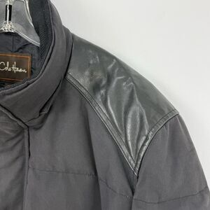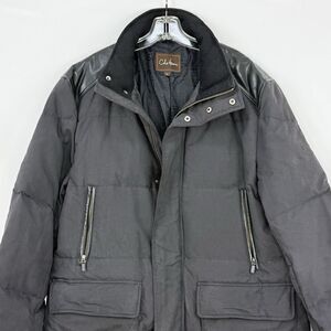 Cole Haan Mens Down Puffer Jacket Black Leather Trim Size M Winter