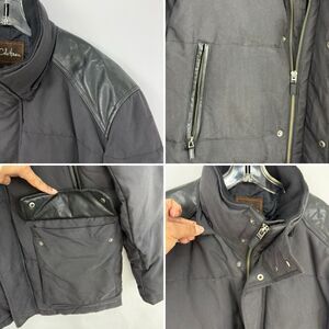 Cole Haan Men’s Down Puffer Jacket Black Leather Trim Size M Winter
