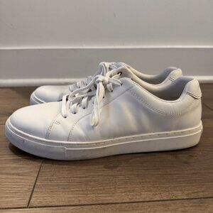 Only worn a handful of times -- in great condition! Cole Haan men's white sneakers in size 10.5 (US) Features: - Plain-toe lace-up low-top sneakers - Contrast outsole; Branding on tongue - Durable rubber sole - Leather upper; Fabric lining; Rubber sole About: Cole Haan takes classic tennis-style and puts a metropolitan spin on it with the standout contrast sole and smooth, shiny leather finish of its modern Grand Series Jensen Sneakers.