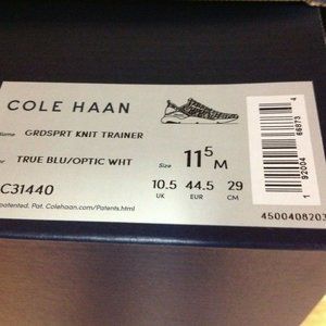 Up for sale is a new in the box pair of Men's Cole Hann GrandSport navy knit fashion sneakers with suede details, USA size 11.5 medium(C31440). I only ship to USA.