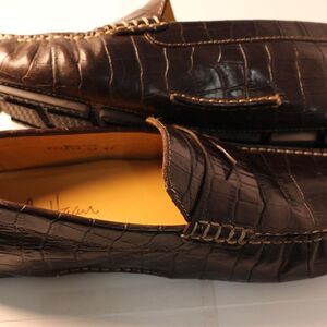 Cole Haan Loafers Mens Driver, Brown, 8.5 WIDE, Leather, Rubber sole. See pics. Crocodile embossed Leather pattern. Great for dress or casual use.