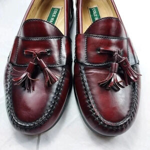 Cole Haan Mens Mahogany Brown Leather Slip-On Tassel Loafer Size 8.5. Pre-Owned In Great Condition! Some wear on Bottom Of Shoe. Please See Pictures to See Actual Shoes! Please Reach Out With Any Questions!