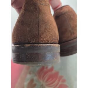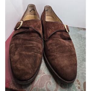 Lightly worn as pictured. The Cole Haan Men's Monk Strap in Mocha Suede Shoes are stylish and unique dress shoes featuring Vibram outsoles for added durability and comfort. The solid brown color, leather lining, and suede upper material make these shoes versatile and high-quality. With a buckle closure and leather insole, these Monk Strap shoes are designed for men who appreciate both style and practicality in their footwear. Made in Italy, these shoes are a fashionable choice for any formal occasion, offering a touch of sophistication to any outfit.