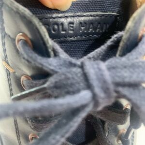 Men’s Cole Haan Navy Blue Lace Up Leather Boat Shoes. Extra soft and comfort is found in these shoes. Can be dressed up or down. Size 11 1/2 Gently Pre-Owned