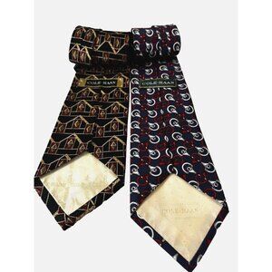 Each tie measures approximately 3.75" in width and 56–58.5" in length. In good condition, with no major flaws, the silk remains smooth and structured—ready to elevate both formal and smart-casual looks.