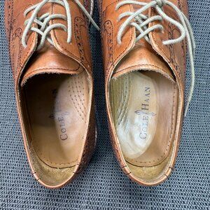 Cole Haan Mens Size 10M Tan Giraldo Wingtip Leather Oxford Shoes Brogue Detail
