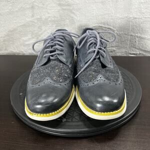 Cole Haan Mens Size 9M Original Grand Oxfords Blue Leather Tweed Wingtip Shoes