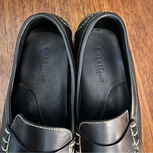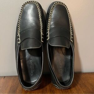 Very good preowned black leather Cole Haan loafer/driving shoes. Men size 11D