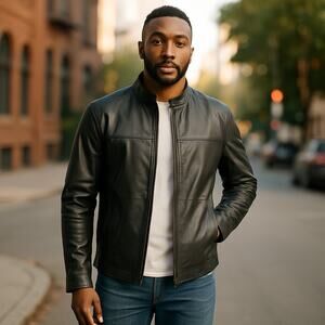 Step into timeless style with this Cole Haan men’s black leather jacket, crafted from 100% genuine lambskin for a buttery-soft feel and lasting durability. Fully lined in smooth polyester for comfort, this full-zip jacket blends rugged sophistication with everyday wearability.