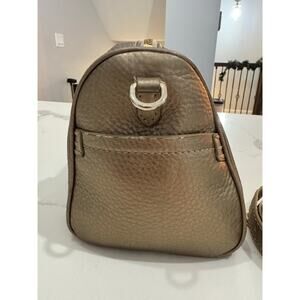 Features: Double handles for shoulder or hand carry, Removeable crossbody strap, Spacious carry-all interior, Metallic bronze leather, Zip closure