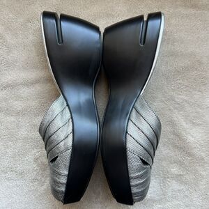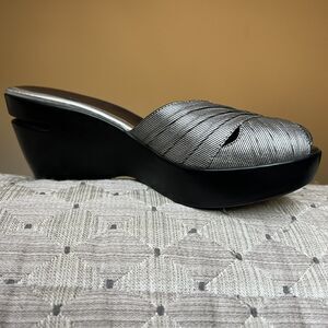 Cole Haan Metallic Silver Open Peep Toe Wedge Slip On Slide Sandal Women’s 8 B