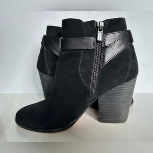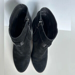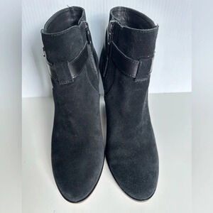 Cole Haan Minna Bootie Black Suede Size 6.5 Buckle Straps Stacked Heel GRAND OS