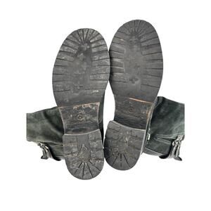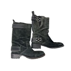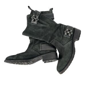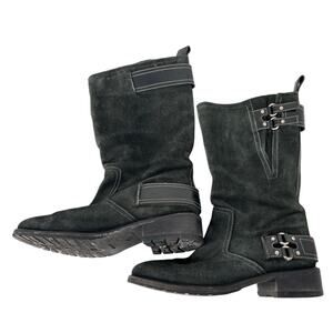 Cole Haan Moto Biker Boots 8.5 Buckle Burnished Suede Charcoal Mid Calf Lug Sole