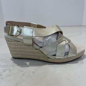 Cole Haan NWOB Crystal Espadrille Wedge Sz 5.5 Silver Casual Sandals Grand 360