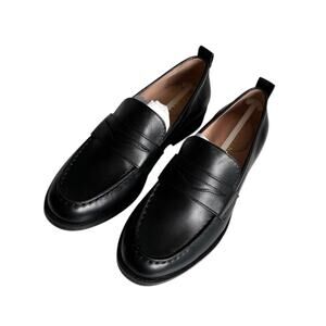 Size 5 Brand new with inserts Smooth black leather. Retail $160 Classic prep loafer silhouette with penny keeper detail on upper Fully padded sock lining with heel and arch cookie for added comfort Full rubberized textured outsole for added traction 0.5" stacked block heel