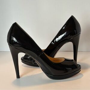 Cole Haan Nike Air Black Patent Leather Peep Toe High Heel Pumps Size 10B