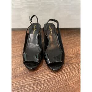 Cole Haan Nike Air Black Patent Leather Slingback Peep Toe Pumps Size 7
