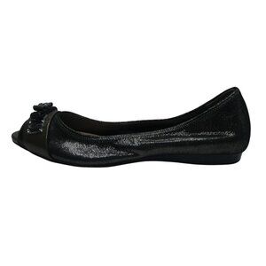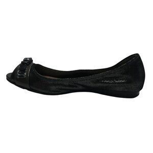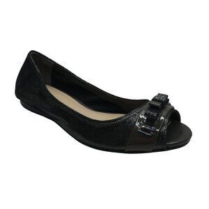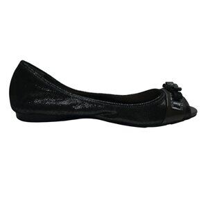 Cole Haan Nike Air Black Shimmer Leather Peep Toe Jeweled Bow Flats Womens 8