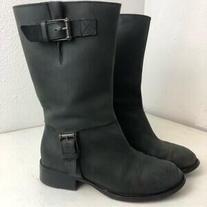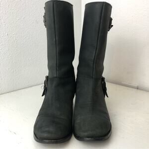 Black leather Leora mid calf motorcycle riding boot, size 6.5