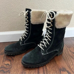 Cole Haan Nike Air Suede Faux Fur Waterproof Combat Lace Black Boot Women Sz 8.5