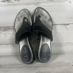 Cole Haan NikeAir Womens Slip On Sandals Flats Open Toe Black Leather Size 7.5B